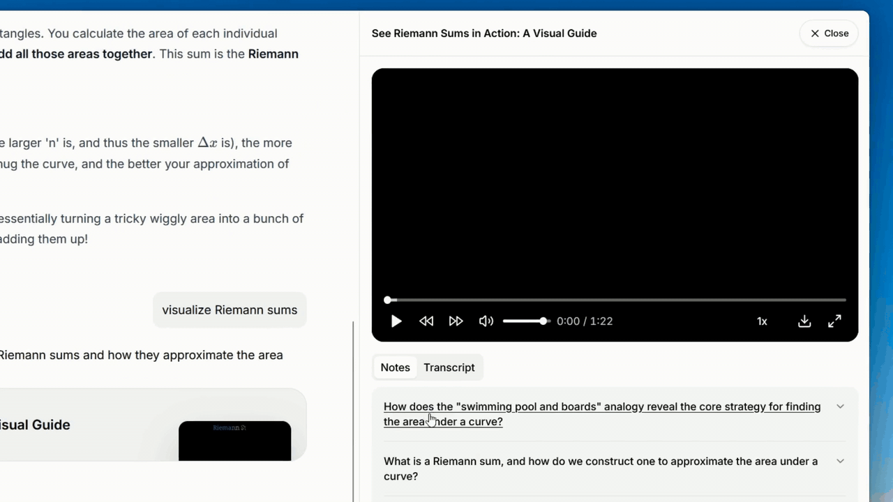 Turn any question into a dynamic, AI-generated video that explains concepts step-by-step right inside the chat.